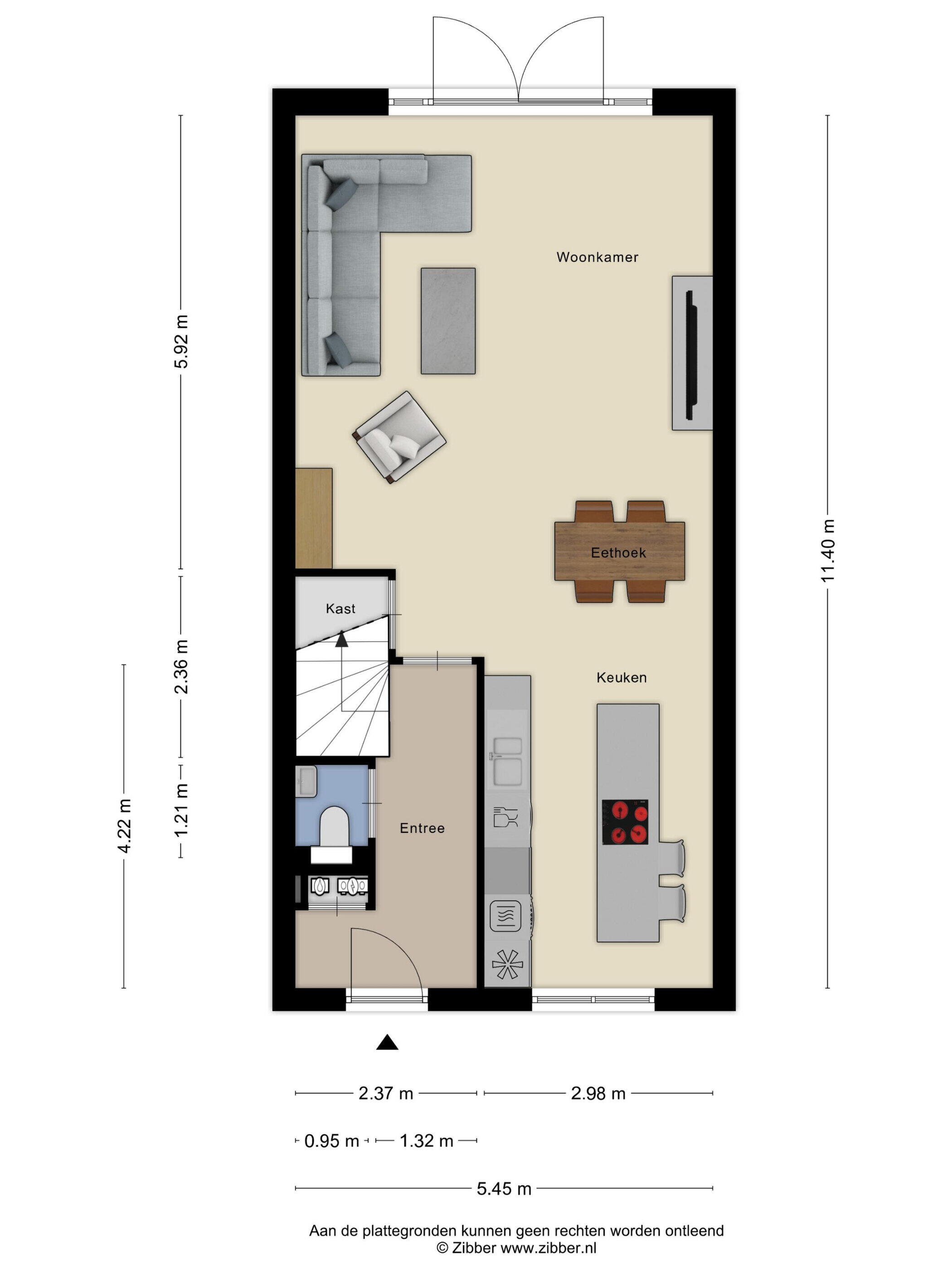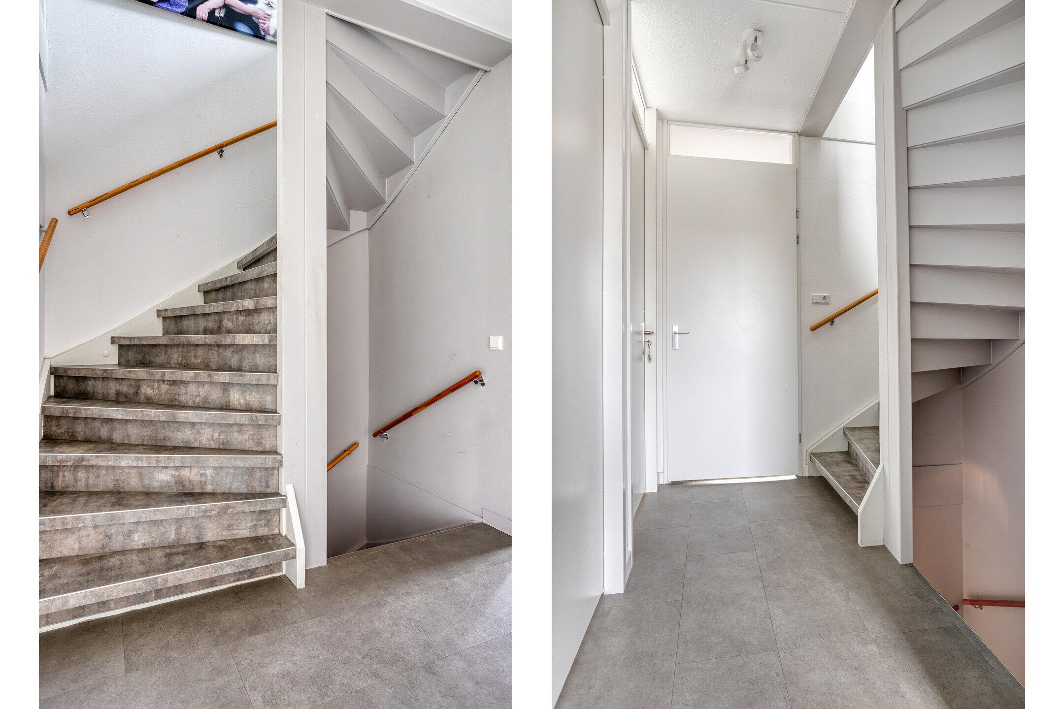 Voor de woning ligt een onderhoudsvriendelijke voortuin, leuk aangekleed met palmbomen die direct een relaxte sfeer geven. Via de voordeur stap je de nette hal binnen met toegang tot het toilet, de meterkast, trap naar boven en natuurlijk de deur naar de woonkamer.