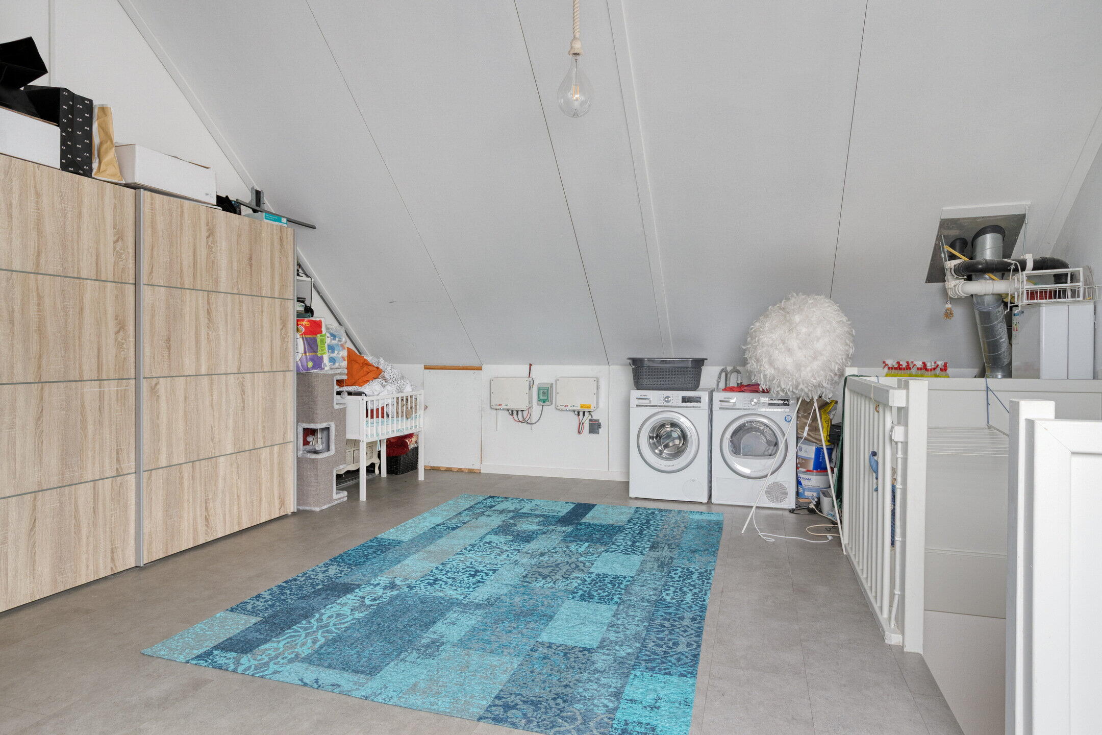 De vaste trap brengt je naar de zolderverdieping: een grote open ruimte die perfect kan dienen als vierde slaapkamer, hobbyruimte of thuiskantoor. Er is een dakraam voor natuurlijk licht én aansluitingen voor wasmachine en droger.